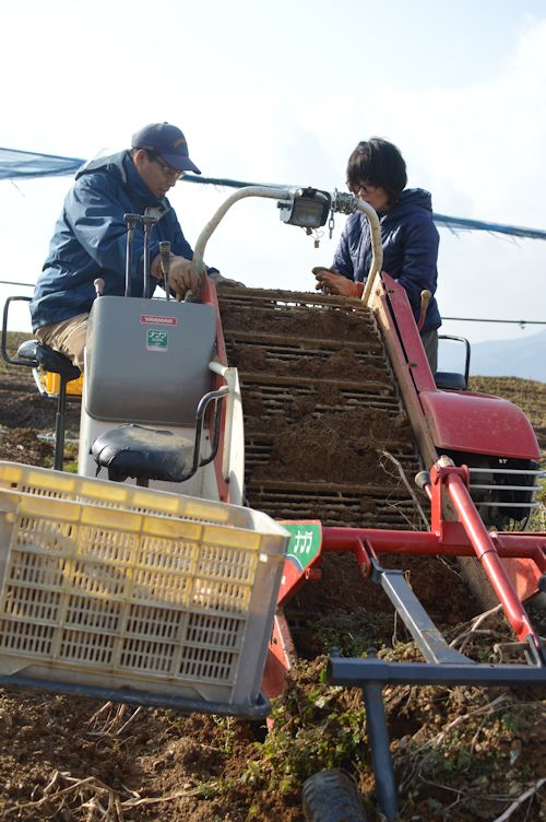 ご夫婦仲良く収穫作業。子育て中の奥様には何かと負担の多い日々ですが一番の理解者でもあります。農業用機械も賢く購入しながら作業の効率化を図っています。