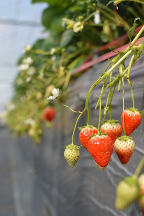 「酸味が低くて甘いんです。10月中ごろから6月まで休みなく量が採れるところもいい。」独立後から手がけているお気に入りの品種「甘雫姫(かんなひめ)」を評する服部さん。もともとは専門学校でパソコンスキルや簿記を教える先生でしたが、奥さんのお父さんの経営する農業法人(観光農園)で10種類以上の苺栽培を経験したのち独立しました。「経営や販売について広く知識があるということは、農業をやる上でとても役に立ちました。」